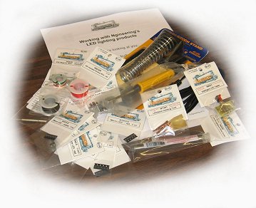 This kit could be called our "jumbo" starter kit. It contains a cross-section of all of our different sizes of LEDs, soldering tools, LED tester, solder, the LED/wire Holding Tool, our #38 wire and two colors of #30 hookup wire, plus switches and battery clips. Also included is a complete 17-page guide to wiring, testing and using our LEDs. For a complete listing of what is included, click on Details in the More Info table above. This kit provides a 16% savings compared to purchasing all of the same items separately.