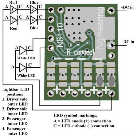 Connecting the 1970's era police 4-LED lightbar and alternating headlights
