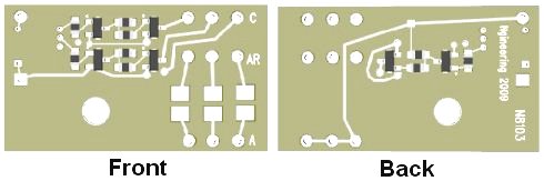 Our N8103-X Simulator Booster Board is available in 3 varieties. The N8103-1 is for a single channel output, the -2 is for a dual-channelk output, and the -3 is for a triple channel output boost. This corresponds to our N80XX Simulators with either a single, two or three outputs programmed for lighting effects. These Booster Boards are designed to "piggy-back" a N80XX Simulator directly on the board using short jumper wires soldered to the Simulator and the Booster Board. These Booster Boards have a 0.140" (3.6 mm) mounting hole for a #4 screw. Our N80XX Simulators have a maximum output voltage of 5-volt DC and output current of 25ma on each of the 3 outputs. This Booster Board is designed to increase that output by a larger factor depending on the DC power supply voltage being used. For example: