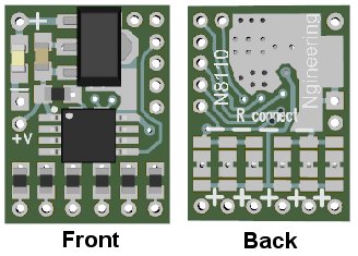 The NLD8110-XX series is a Low-voltage version that uses the same high-precision switching regulator but is configured for a 3.3-volt output voltage and supports a DC input voltage range of 3.4-24 volts. It will support DCC sound decoders that have 3.3-volt accessory outputs and... support R/C modeling applications that use 3.6-3.8 volt batteries. This series uses the same microcontroller as the N8110-XX above. This series does not have on-board DC input polarity protection.