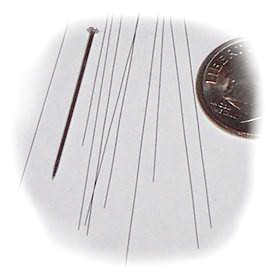 ultra-fine, super-straight stainless steel wire (shown above with a dime and
