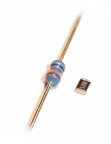 Here's one of our 1/8 watt surface-mount resistors next to a typical axial-lead 1/8 watt resistor. The axial unit is about 5 times bigger (not counting the leads) but has the same power carrying capability. The size difference between our 1/4 watt resistors and their axial-lead cousins is even more dramatic. Since the pads are pre-tinned, it's really easy to solder on our #38 magnet wire and just as simple to solder one or more of these directly on the plus (+) lead of our bridge rectifier. If space is a major issue, you can hide them almost anywhere, and if necessary, they can be painted with acrylic paint for further disguise. Always be sure you select the correct wattage resistor for your application. This will ensure the resistor does not overheat and cause damage to itself or melt nearby plastic parts. © 2008 Ngineering |